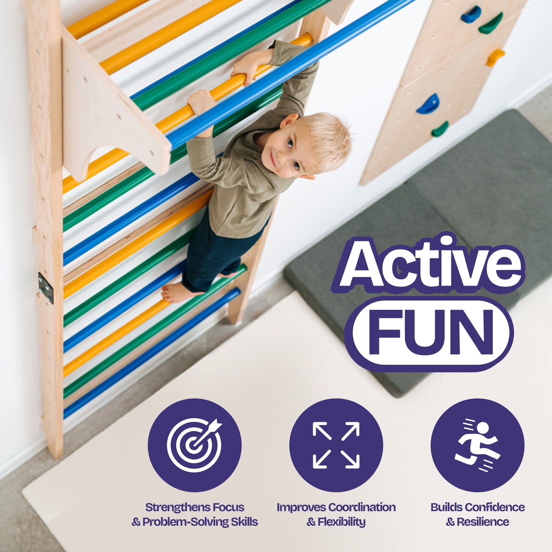 • SAFE & STURDY INDOOR PLAYSET: Built for durability, this kids' indoor climbing gym is made from high-quality materials to withstand hours of climbing. Parents can feel confident that their kids are safe as they explore and play.